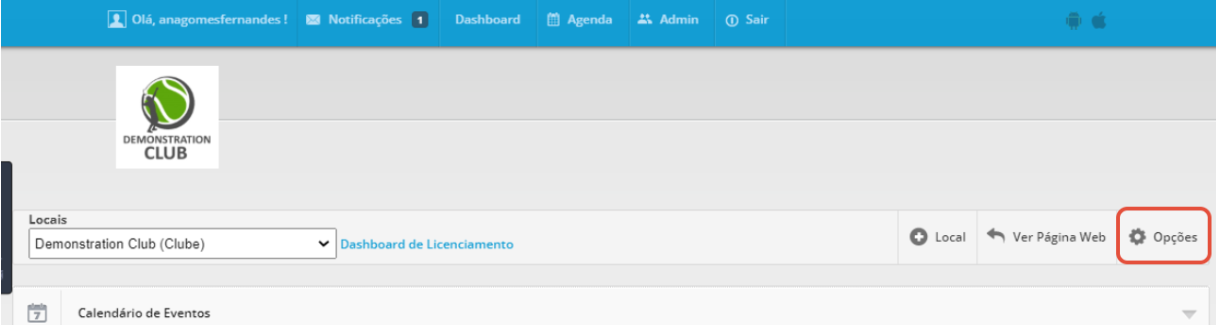 Depois de entrar no painel de administração, aceda ao menu Opções e selecione a secção Acessos de Administração.