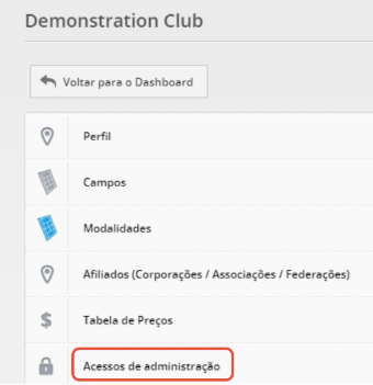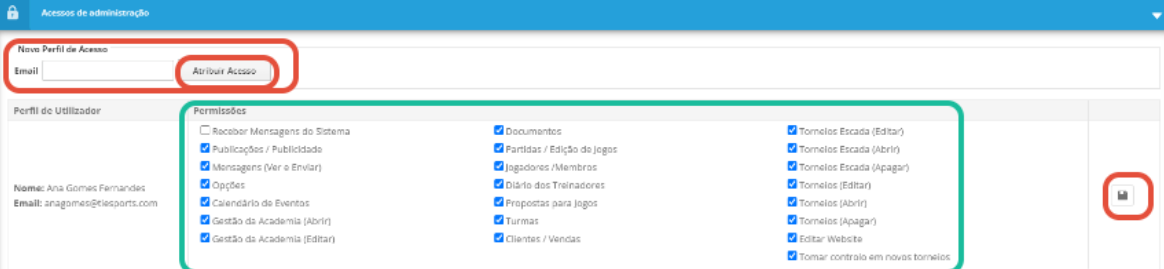 Apenas utilizadores que já possuam permissões de administrador num determinado clube podem atribuir, editar ou remover acessos de administração.