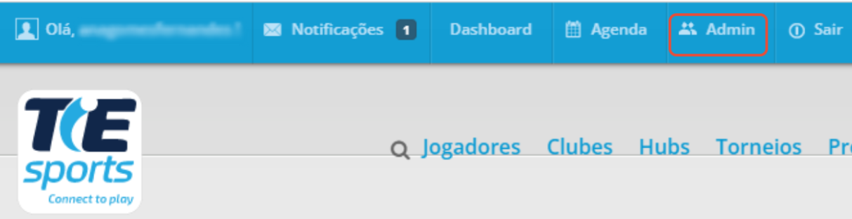 No menu principal, clique em Admin para entrar no painel de administração do clube: