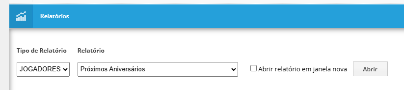 Pode facilmente obter uma lista dos jogadores que fazem anos nos próximos 7 dias através do menu de Relatórios. Siga os passos abaixo: